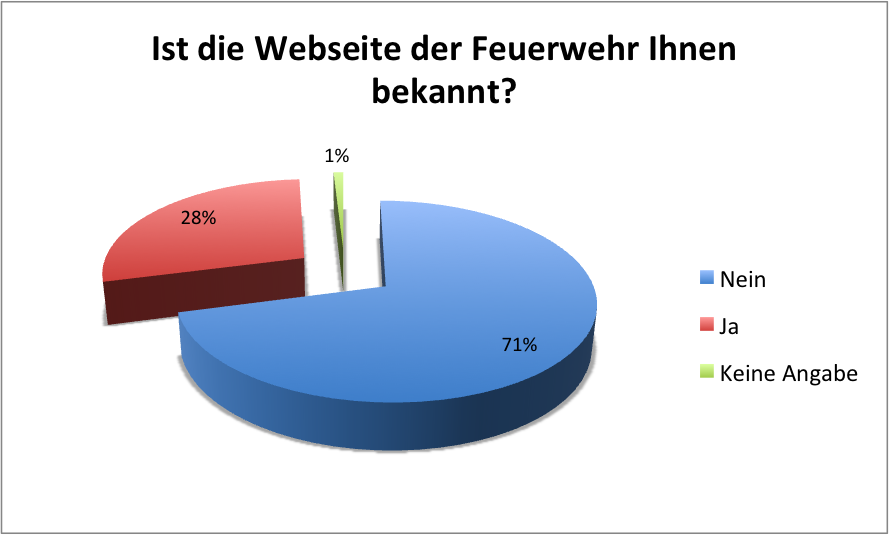 Gerade mal 28% kennen die Webseite der Feuerwehr Rheinfelden. Mittels den Massnahmen müsste der Bekanntheitsgrad der Webseite zu steigern sein, da die Webseite die erste Anlaufstelle ist, wenn man der Feuerwehr beitreten möchte.